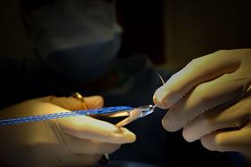 While meshes have the advantage of distributing forces over a large area and transferring the associated high forces, sutures have the advantage of accurate placement. The use of sutures is problematic if large forces need to be transferred: sutures can cut into the tissue and compromise the surgical outcome. DURAMESH™ Suturable Mesh solves this problem: it is a mesh tube that can be used in the same way as sutures and distributes forces at the mesh-tissue interface.